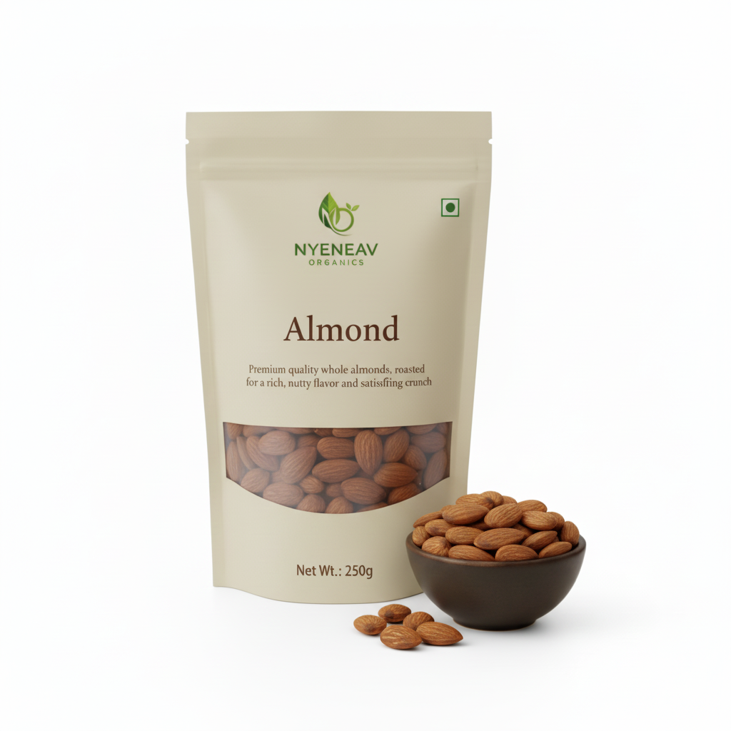 Premium whole California almonds, naturally grown and carefully selected for size, taste, and freshness. These crunchy, nutrient-dense nuts are unpasteurized and raw, preserving their natural enzymes and maximum nutritional value. Perfect for snacking, baking, or adding to meals.
